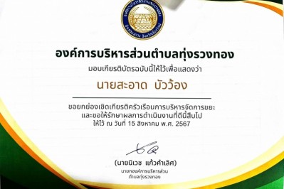 องค์การบริหารส่วนตำบลทุ่งรวงทองมีการยกย่องเชิดชูเกียรติครัวเรือนในการบริหารจัดการขยะ