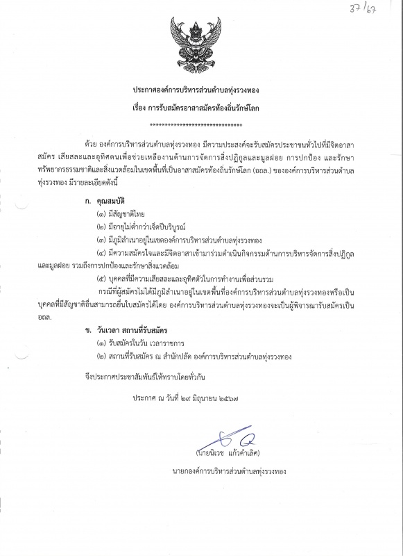 ประกาศ : เรื่อง การรับสมัครอาสาสสมัครท้องถิ่นรักษ์โลก