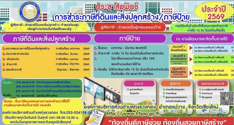 ประชาสัมพันธ์การจัดเก็บภาษีที่ดินและสิ่งปลูกสร้าง ภาษีป้าย ประจำปี 2569